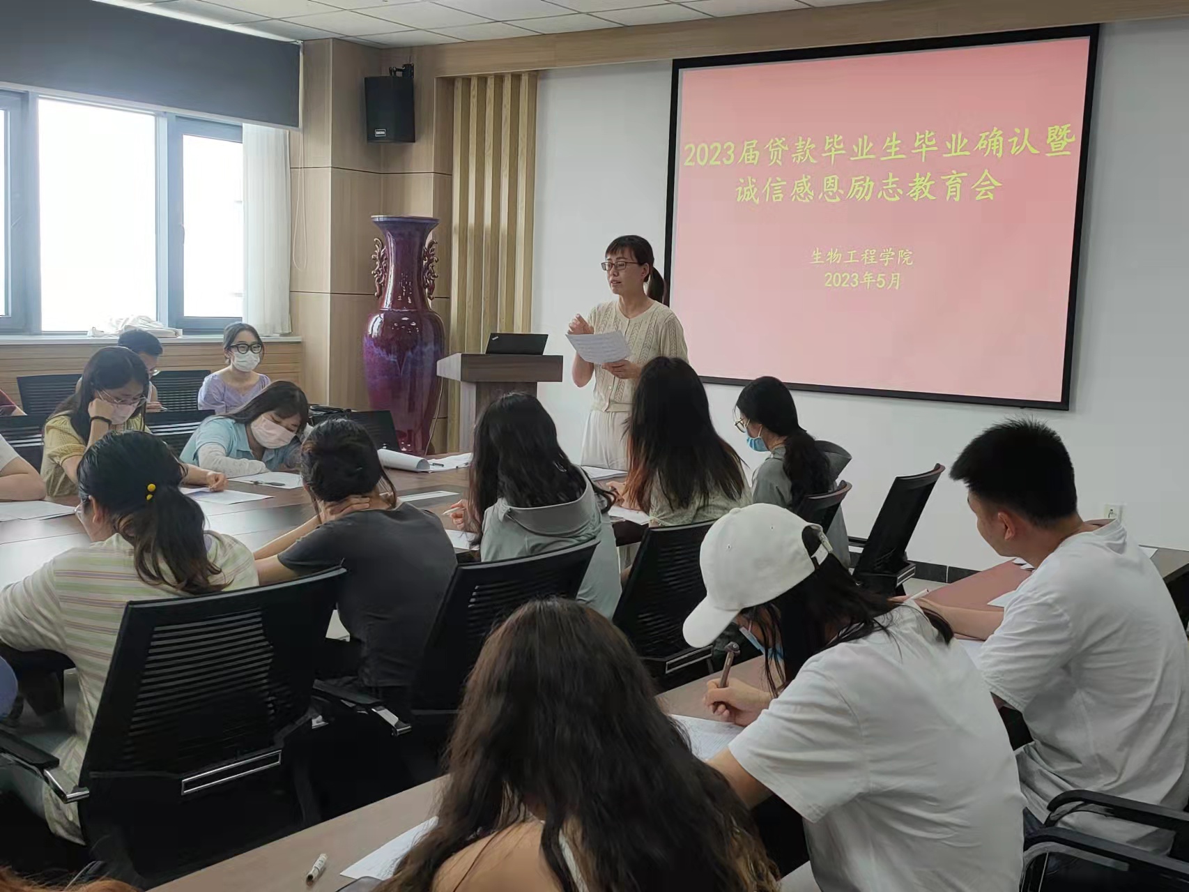 会上,李亚楠对国家助学贷款相关政策、还款付息流程、展期办理手续、贷后管理要求及毕业确认相关材料填写等方面做了详细讲述。同时以具体的违约案例,告诫同学们诚信的重要性、良好信用的必要性以及不良征信记录带来的危害,提醒同学们要严格遵守贷款合同、履行还款还息义务。她强调,国家助学贷款是对我们高校家庭经济困难学生的一种资助,作为受助的毕业生要努力进取、自强自立、立志成才,要常怀感恩之心,永葆诚信品质。