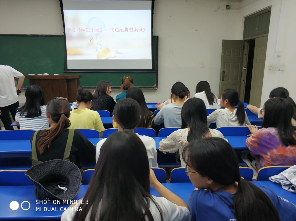 会议上,由岳媛媛老师向大家介绍《河南工业大学学生手册》内容,学习关于学生规范条例,考试违纪惩罚条例以及其他关乎每位同学切身利益的内容。其后,由周珊珊老师,陈凌子老师和丁凯强老师,带领着大家学习《河南工业大学违纪经典案例》,使同学们从中领悟道理,作为学生应该诚信考试,遵守考场纪律,不应出现舞弊行为。最后,由学生代表发言,谈一谈从《学习手册》中学到的知识,并将在以后的生活中得以实践,履行作为一名合格大学生应尽的义务,努力成为一名新时代优秀大学生。